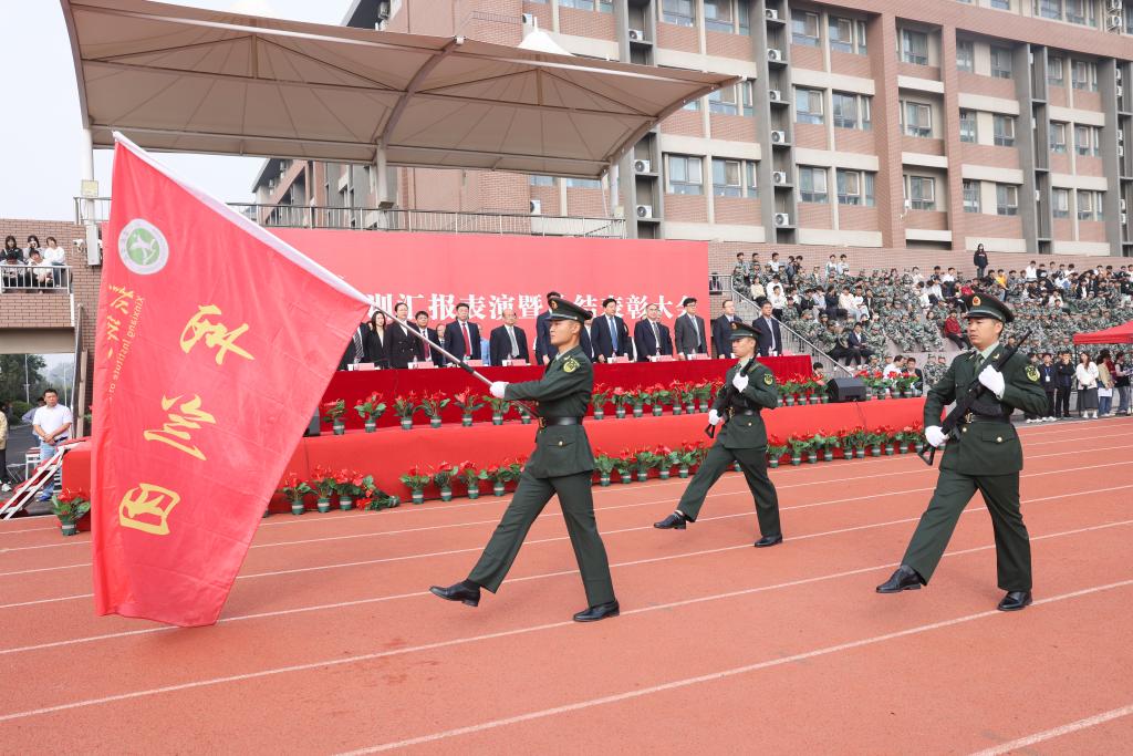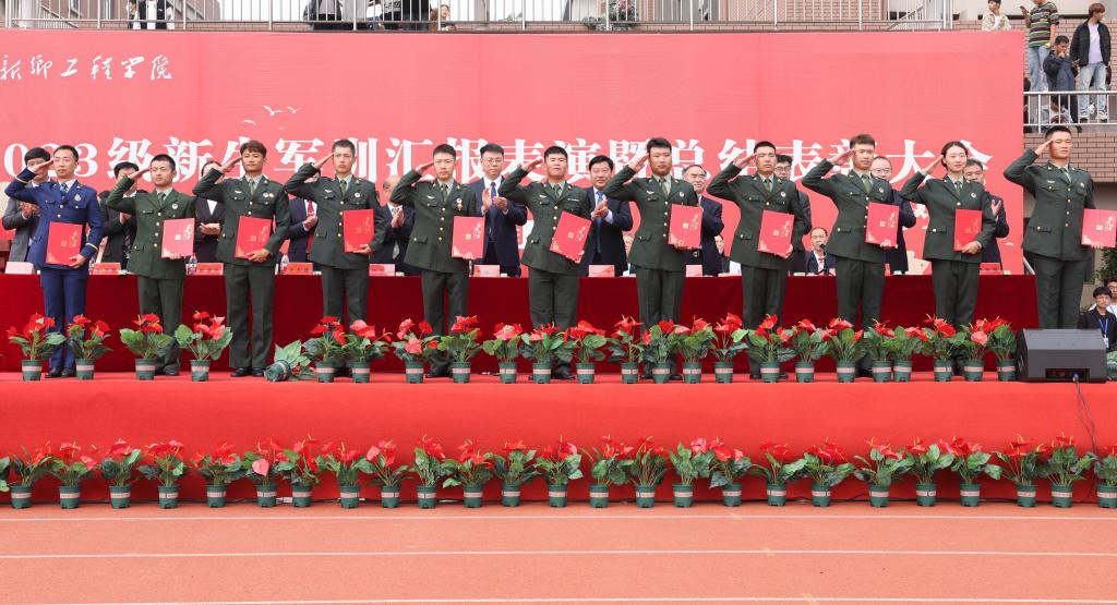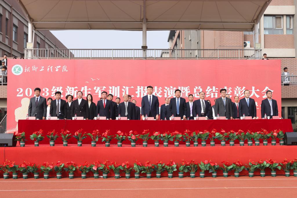 9月28日上午,我校在北校区田径场隆重举行2023级新生军训汇报表演暨总结表彰大会。董事长赵建永、党委书记陈广文、监事会主席周铁项、校长张现周、党委副书记张永福、副校长赵一鹏、赵瑞玲、李左峰、校长助理李帅军、杜灵来、相关职能部门和各学院负责人出席大会并在主席台就坐。大会由副校长张彦军主持。