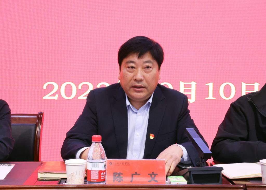 陈广文围绕扎实做好主题教育“后半篇文章”提出三点要求:一是强化理论武装,筑牢思想根基。要继续将理论武装贯穿于党内集中教育全过程,推动理论学习常态化、长效化,在筑牢思想根基上强信念、见实效。二是强化问题整改,狠抓落实之风。坚决以钉钉子精神,逐项整改、逐条落实,坚决做到整改不到位不放过、不达目的不收兵。三是强化服务大局,落实根本任务。围绕创新驱动、科技强校、人才强校战略,着力构建一流学科、打造一流课程,聚焦国家和地方发展战略需求,实现特色化、差异化发展。