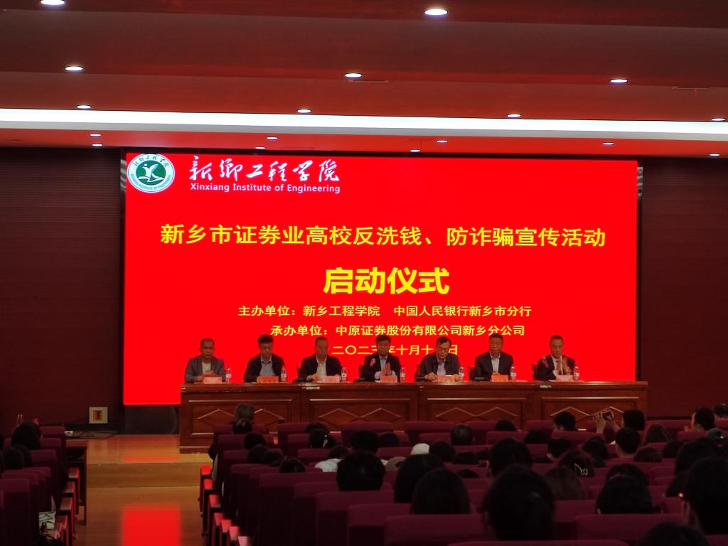 为增强学生反洗钱防诈骗意识,增强他们的防范能力,培养正确的金融消费观念,10月12日,由永利23411集团官网与中国人民银行新乡市分行共同主办的“反洗钱、防诈骗教育”主题宣传活动在学院楼报告厅举行。我校副校长张彦军、中国人民银行新乡市分行副行长张文顶、国家金融监督管理总局新乡监管分局局长李晓华、新乡市金融局副局长张甲乾、中原证券新乡分公司总经理王天鹏及经管学院院领导、师生代表等300余人参加了启动仪式。