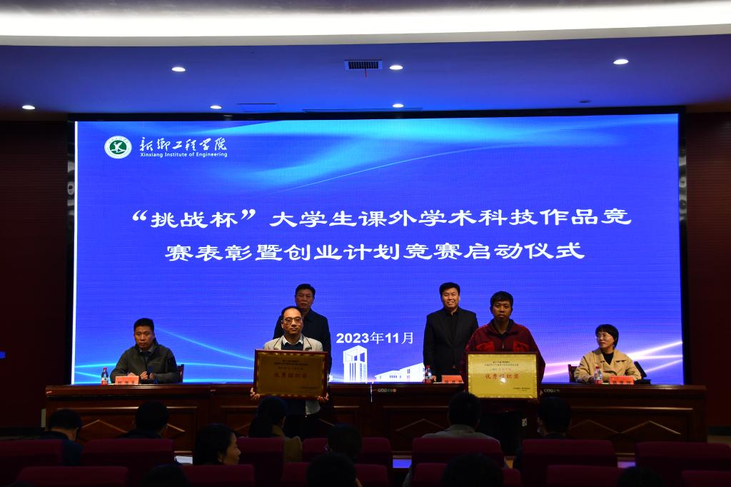 仪式宣读了学校《关于表彰第十六届“挑战杯”河南省大学生课外学术科技作品竞赛优秀组织单位和个人的通知》,优秀指导教师代表和优秀参赛选手代表分别作了经验分享。