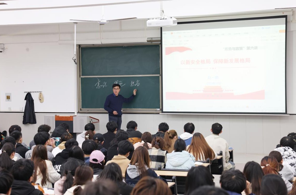 11月14日上午,副校长赵一鹏教授以《以新安全格局 保障新发展格局》为题,给信息工程学院2022级的同学们上了一节生动的思政课。