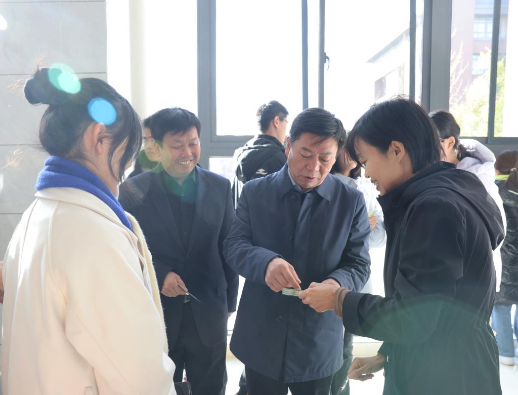 张永福、张彦军一行参观体验了“暖冬惊喜,全‘心’热爱”趣味游园活动。活动现场,学生们积极参与活动、拍照留念、打卡集章,气氛热烈,充满了欢声笑语。校领导十分关心北校区“一站式”学生服务社区建设情况,在学生事务服务中心听取了有关负责同志的工作汇报,提出要不断创新优化服务职能,切实让同学们“少跑路”,真正为学生的学习和生活服务好。