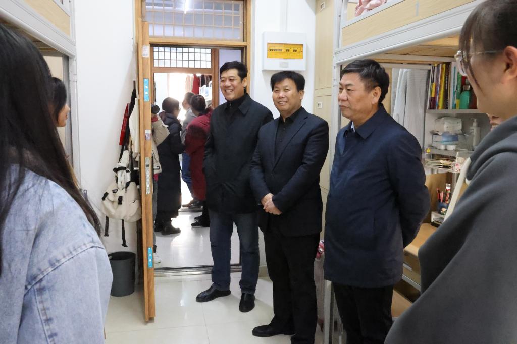 张永福、张彦军一行首先来到学生宿舍,与学生亲切交流,关心询问学生入学适应情况、有没有生活困难,现场协调解决学生实际问题,叮嘱学生冬季注意保暖及用电安全,勉励他们要坚定理想信念,厚植家国情怀,夯实专业基础,加强实践锻炼,涵养进取品格,以奋斗姿态激扬青春,不负时代,不负华年。