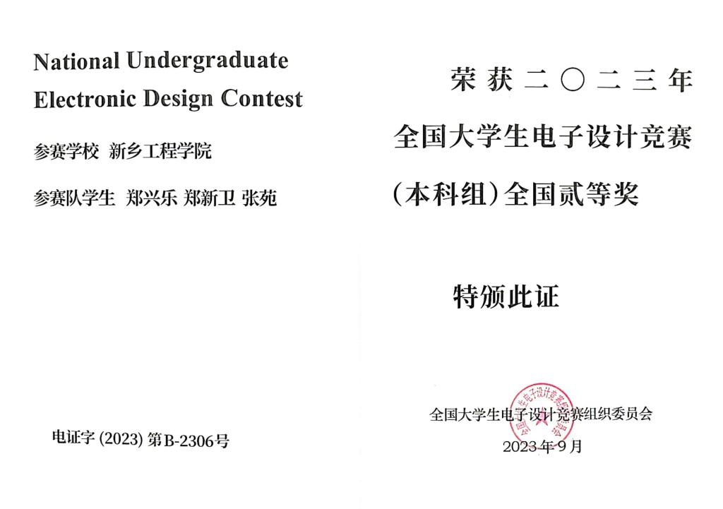 近日,2023年全国大学生电子设计竞赛在北京隆重举行颁奖典礼,我校信息工程学院学生郑兴乐、郑新卫、张苑设计的作品“单项逆变器并联运行系统”喜获全国大学生电子设计竞赛(本科组)二等奖。