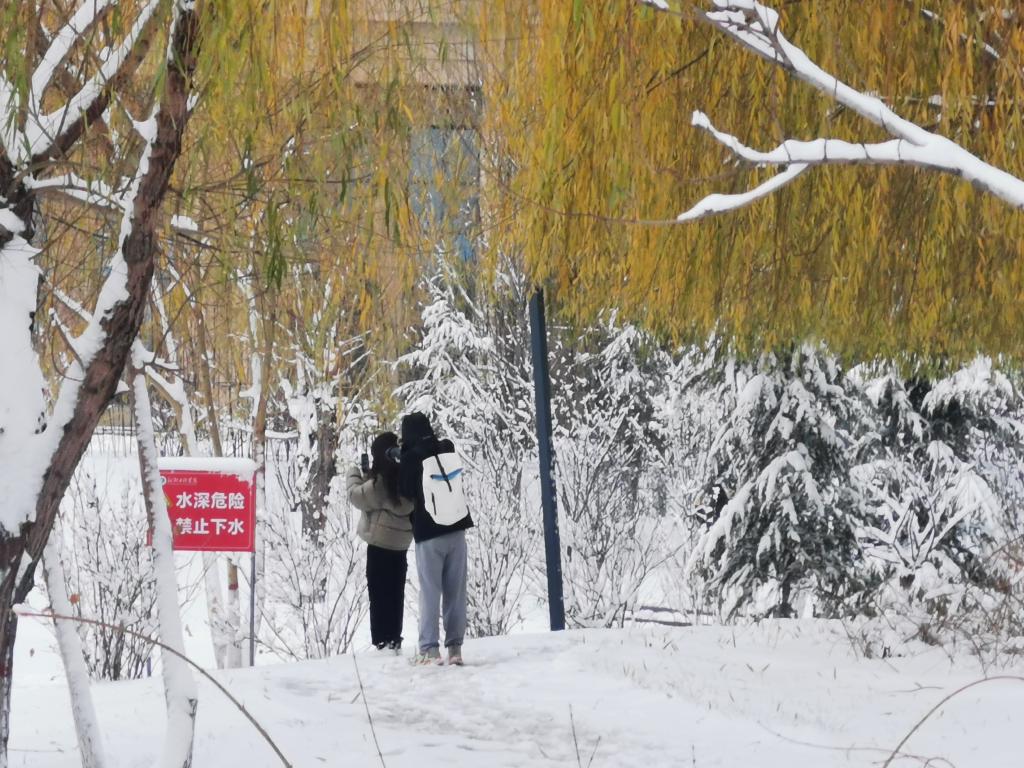 雪花与冬天的邂逅,是校园最浪漫的装点。如约而至的初雪给整个校园轻轻披上了一袭白纱,惊艳唯美,令人陶醉,校园里到处都充满了诗情画意……