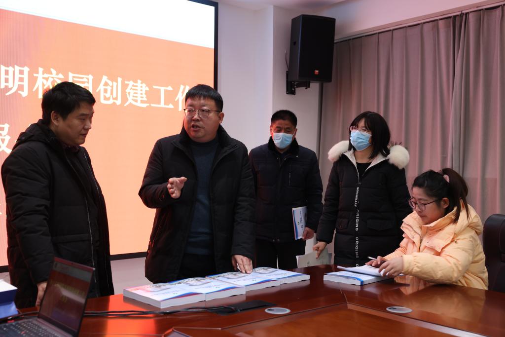 随后,调研组观看了学校宣传片,听取了党委宣传部负责人关于县级文明校园创建工作的情况汇报,查阅了创建材料,进行了实地考察。