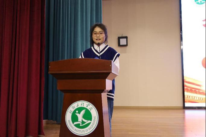 文法学院张宁同学作为学生代表发言。一分耕耘,一份收获,我们要认真学习,积极备考,端正态度,诚信考试,在考试中培养自己的诚信品格,在人格答卷上得到满分。