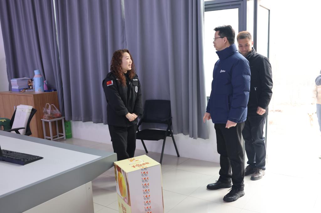 姚远峰一行先后走访南北校区门岗值班室、24小时总值班室、安防中心值班室等,“新年好,大家辛苦了!”,每到一处,姚远峰与坚守岗位的值班人员互致新年问候,并与他们亲切交流,详细了解各值班点的运行保障情况,以及应急处置、安全责任的落实情况。姚书记充分肯定了他们舍小家顾大家,坚守工作岗位、认真履职尽责的奉献精神,对他们维护校园安全稳定所做的贡献表示感谢,并叮嘱大家一如既往地做好服务保障工作,确保校园安全,高质量保障学校度过一个欢乐平安祥和的新春佳节。
