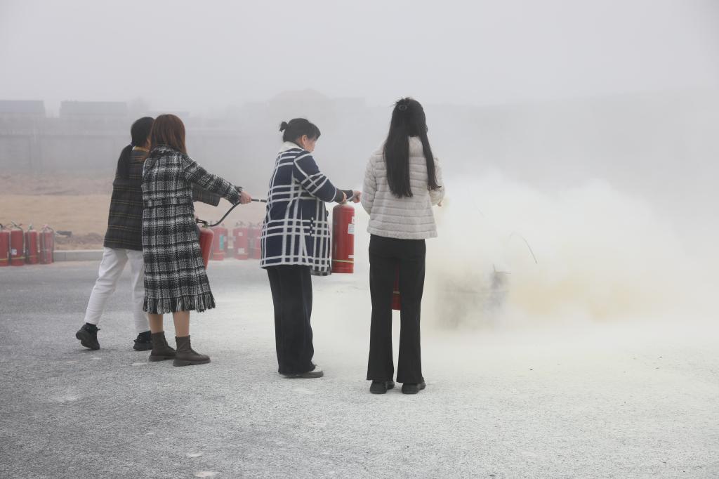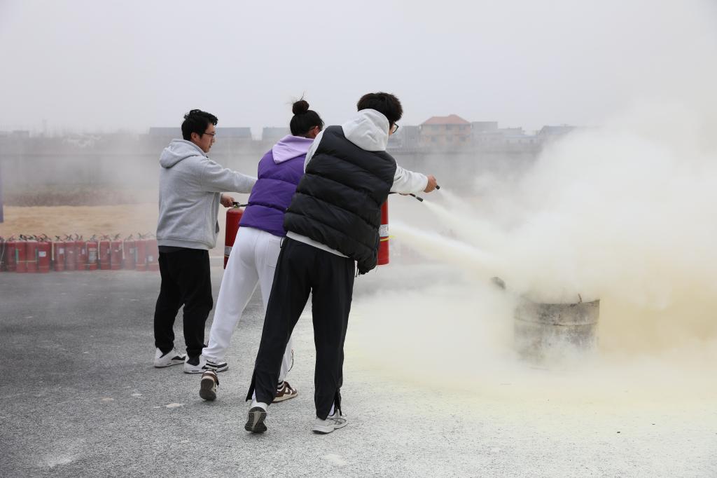 按照本次培训会议要求,在西南操场组织实战灭火演练,张迪教官对灭火器使用方法、水带连接进行全面的讲解示范,全体人员对灭火器进行了操作,演练取得预期效果。