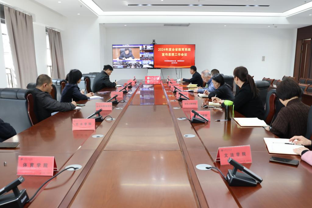 会议总结回顾2023年工作,统筹部署2024年全省教育系统宣传思想工作重点任务,相关高校作了典型交流发言。尹洪斌就做好2024年全省教育系统宣传思想工作提出要求:一是聚焦理论武装,坚持不懈用习近平新时代中国特色社会主义思想铸魂育人。着力提高理论学习质量,不断深化理论研究阐释,持续开展理论宣讲普及。二是聚焦关键课程,持续提升学校思政课教育教学质量和水平。全力建强建好马克思主义学院,持续深化高校思政课和推进大中小学思政课一体化改革创新。三是聚焦协同发力,全方位构建育人大格局。要多部门协同、多要素联动、多方面参与,形成百花齐放全员育人的强大合力。四是聚焦精准有效,不断提高心理健康教育工作的针对性。以深化大学生心理健康促进行动为契机,提升心理工作者队伍素质,发挥课堂教学主渠道作用,拓展心理健康教育载体。