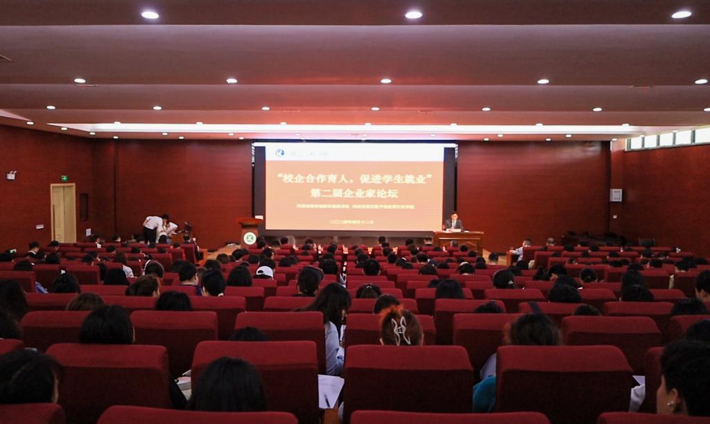 为贯彻校企联合培养、科教协同育人理念,4月12日下午,我校在南校区学院楼报告厅举办“校企合作共育人 学生就业共发展”第二届企业家论坛。来自全国各地、食品旅游酒店行业的50多名企业高管参加论坛。我校校长张现周、副校长赵一鹏、食品工程学院院长马汉军、全体教师及部分毕业生代表参加,论坛由赵一鹏主持。