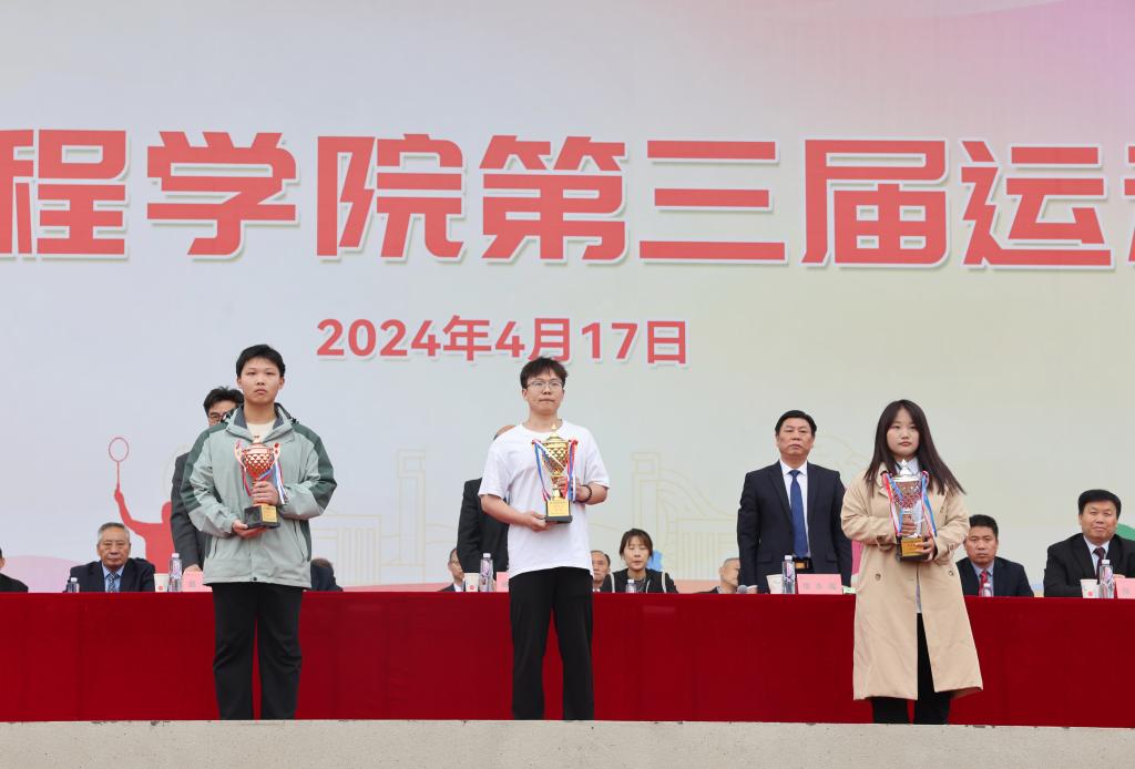 校党委副书记张永福宣读了本次运动会入场式、团体操、比赛团体名次、体育道德风尚奖、优秀组织奖、优秀运动员等获奖单位和个人名单。随后,与会校领导为获奖单位和个人颁发了奖牌和证书。