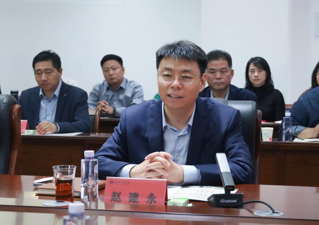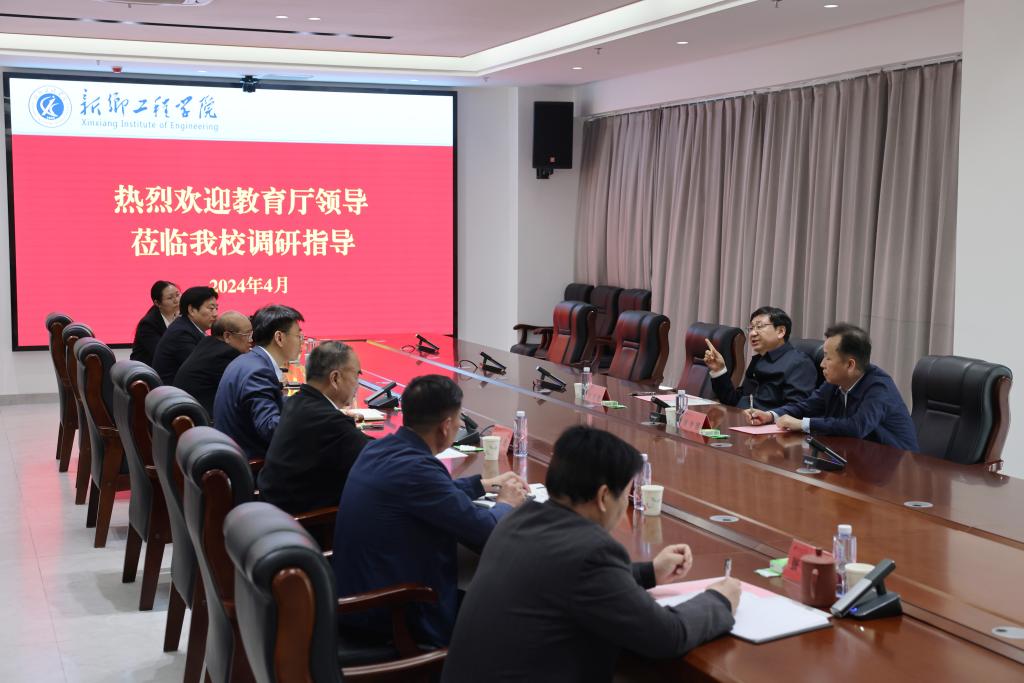 赵建永代表学校对朱自锋一行在百忙之中调研指导表示热烈欢迎,对省教育厅一直以来给予学校的大力支持和帮助表示衷心感谢,向其汇报了学校发展历程等整体情况。他表示,学校将进一步加强内涵建设,优化学科专业布局,提高教学质量,不辜负省教育厅的期盼和希望,诚恳期盼今后多来学校,帮助和指导我们共谱新工高质量发展的新篇章!