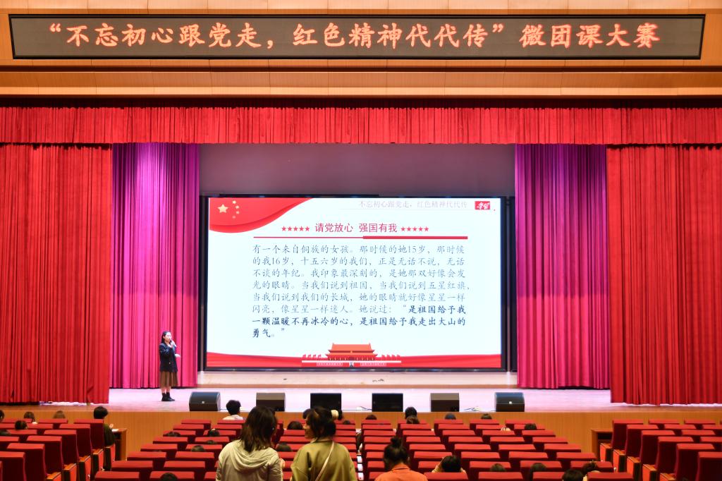 本次微团课大赛以“不忘初心跟党走,红色精神代代传”为主题。经过各学院初赛的选拔,共有13名团干部进入决赛。比赛过程中,选手们满怀热情讲述红色故事,传递中国力量。13名参赛选手围绕“红色教育”、“发展成就”和“青春奉献”这三个类别,穿插运用案例讲解、情景演绎、视频呈现等形式,进行了一场“沉浸式”的微团课讲授。