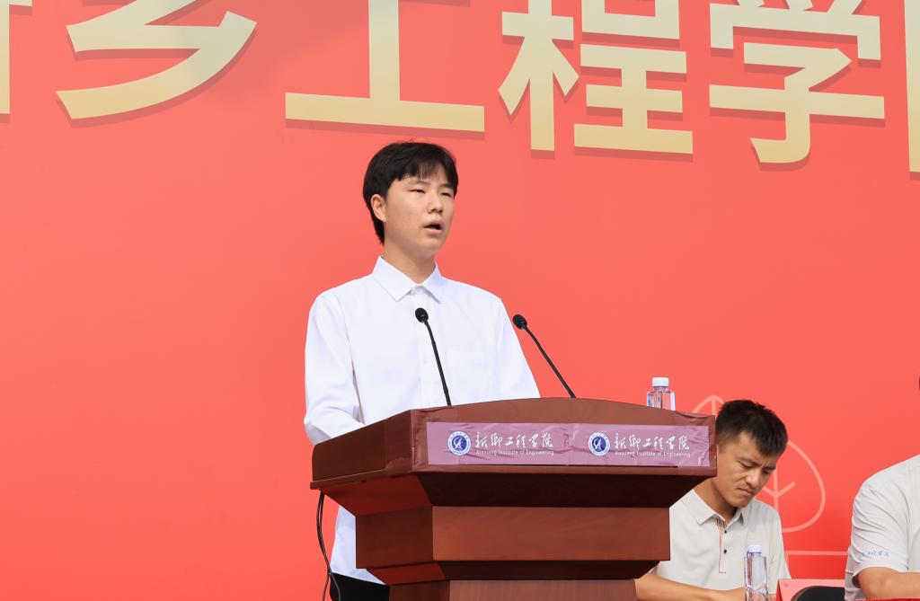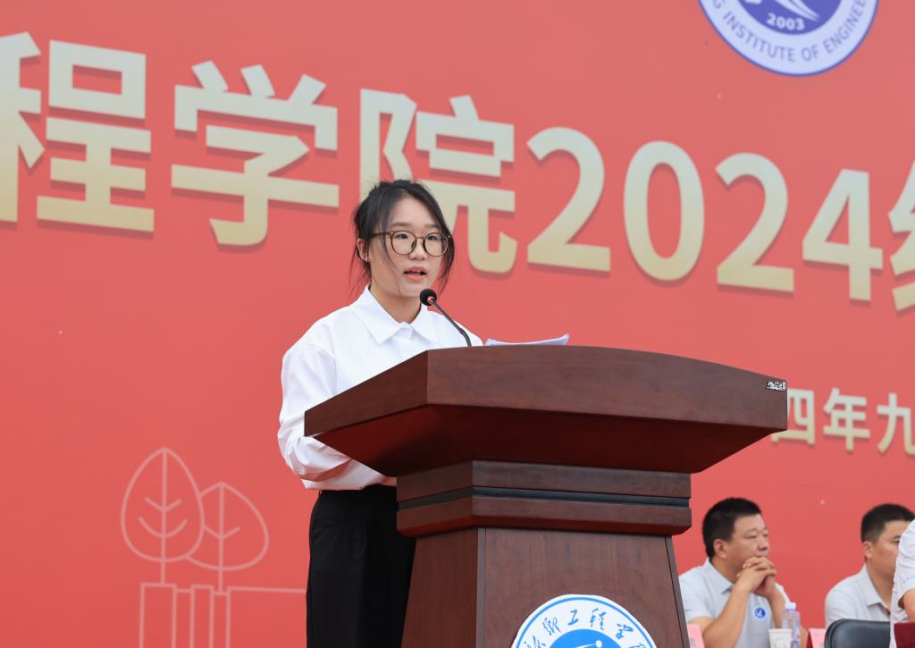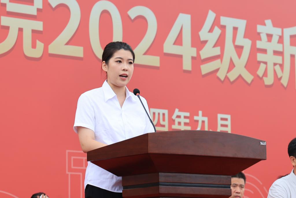 高年级学生代表节玥彤、黑凯发言,分享了自身的学习经验和收获,期待与新同学们携手并进,共创美好大学时光。新生代表周亚琪、王子堂在发言表示要勇担时代重任,不负青春韶华,奋力书写为中国式现代化挺膺担当的大学篇章。