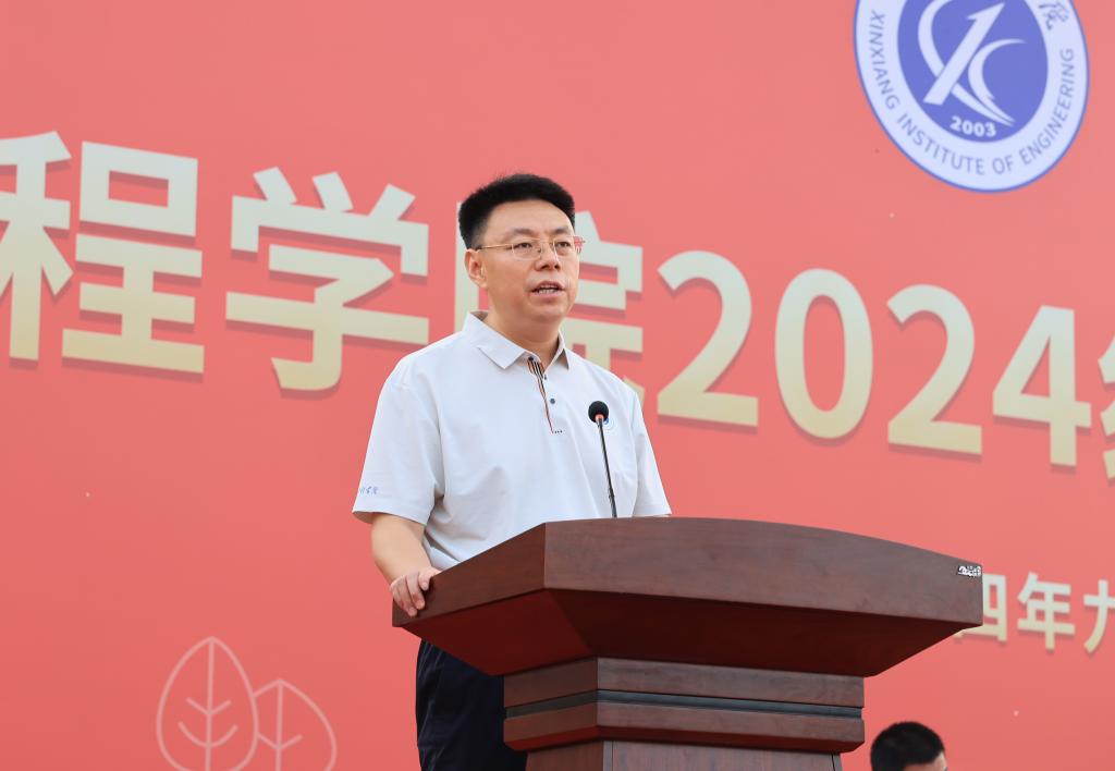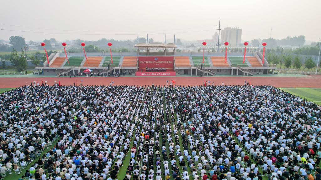 9月9日上午,我校2024级新生开学典礼先后在南、北校区隆重举行。校董事长赵建永、党委书记姚远峰、监事会主席周铁项、校长张现周、副书记张永福、副校长赵瑞玲、张彦军、校长助理李帅军、杜灵来、韩国立及各职能部门、二级学院负责人出席典礼并在主席台就座。教师代表、学生代表、全体新生辅导员以及2024级本专科新生参加典礼。典礼由副校长赵一鹏主持。