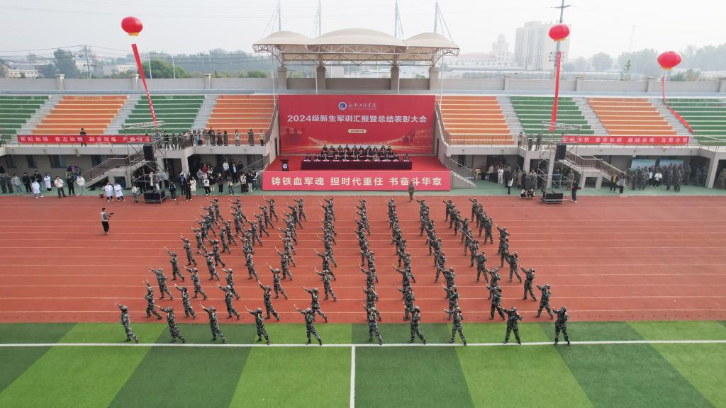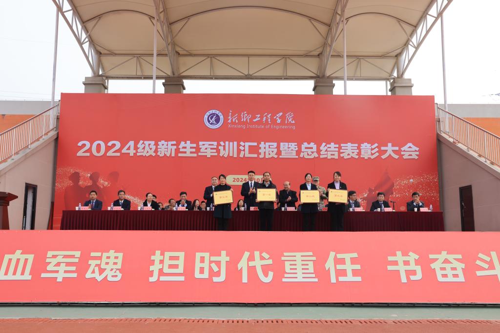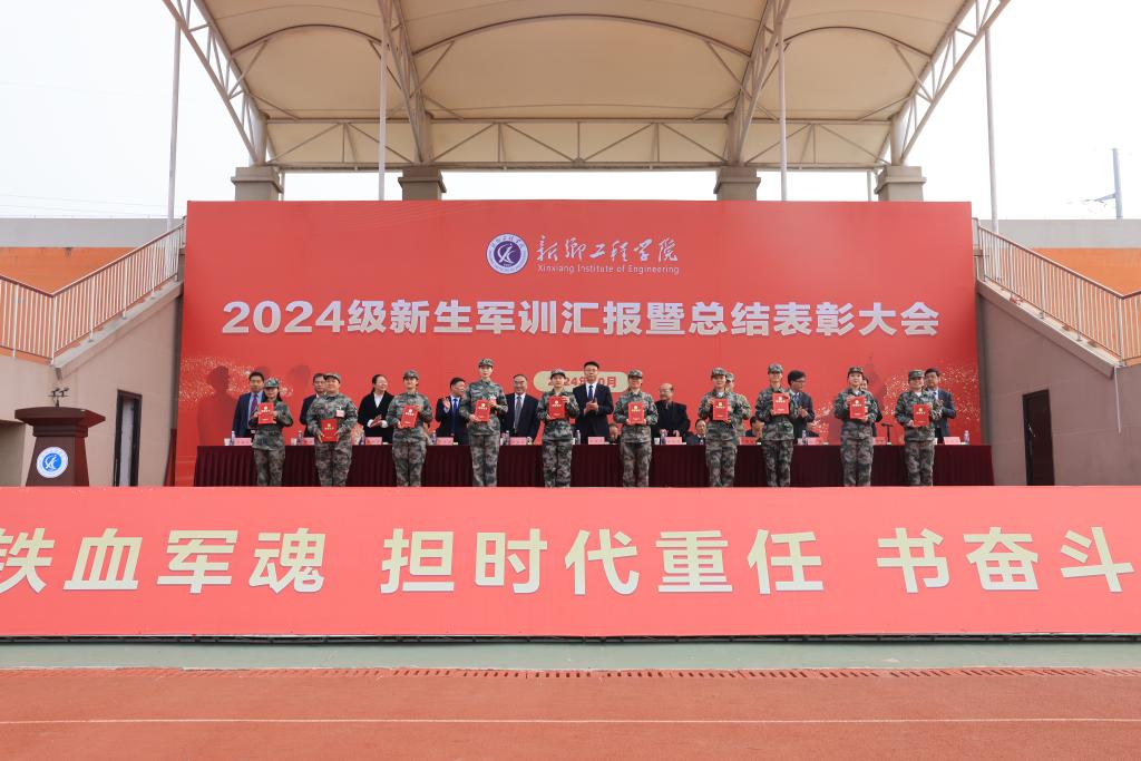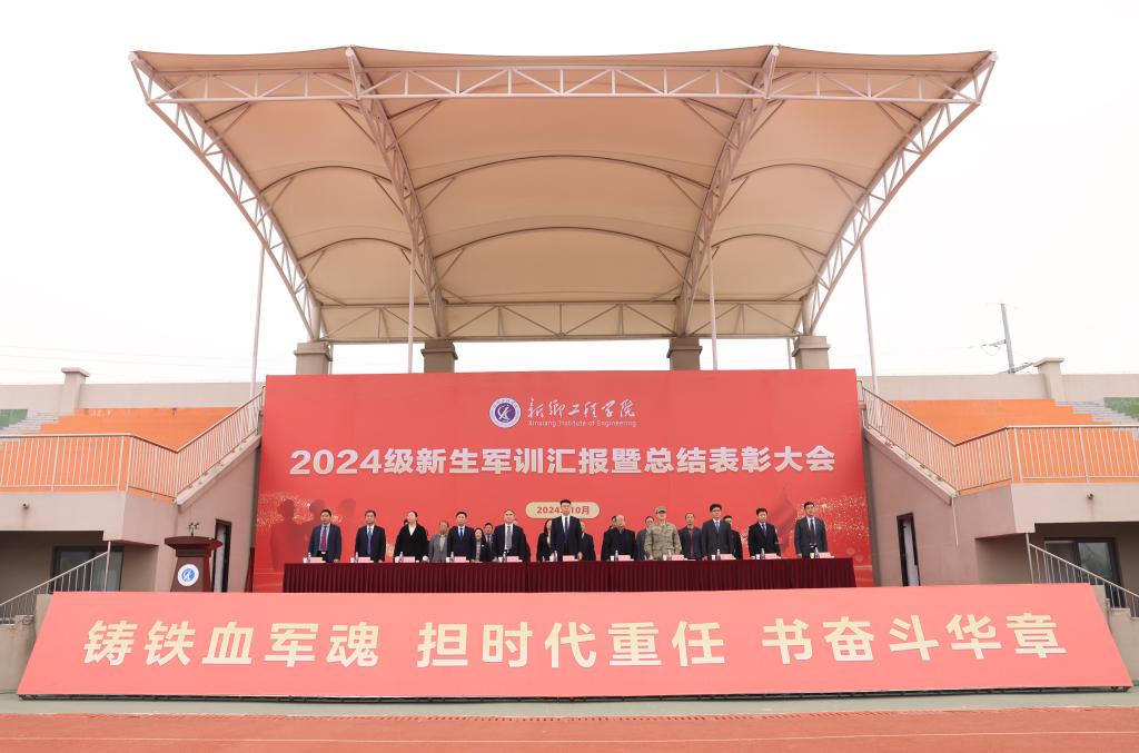 10月28日上午,我校在南校区田径场隆重举行2024级新生军训汇报暨总结表彰大会。驻新某部政治工作部副主任王洋洋、董事长赵建永、监事会主席周铁项、校长张现周、党委副书记张永福、副校长赵一鹏、赵瑞玲、校长助理李帅军、杜灵来、韩国立出席大会并在主席台前排就坐,大会由副校长张彦军主持。