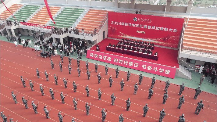 伴随着雄壮的分列式音乐,由各学院组成的8个方阵营迈着整齐划一的步伐在主席台下接受检阅,展现了2024级新生朝气蓬勃、保家卫国的精神风貌以及团结一心、积极向上的勃勃生机。随后,军训成果特色汇报表演开始。单个军人队列动作展示整齐划一,其疾如风,其徐如林,展示出军人服从命令、听从指挥的优良作风。匕首操的表演充满了力量与美感,既展现了匕首操的实用性,又展示了同学们的协调性和节奏感。刺杀操的同学们手持模拟枪械如银龙出海,气势磅礴。他们的动作整齐划一,刚劲有力,喊杀声震天动地。