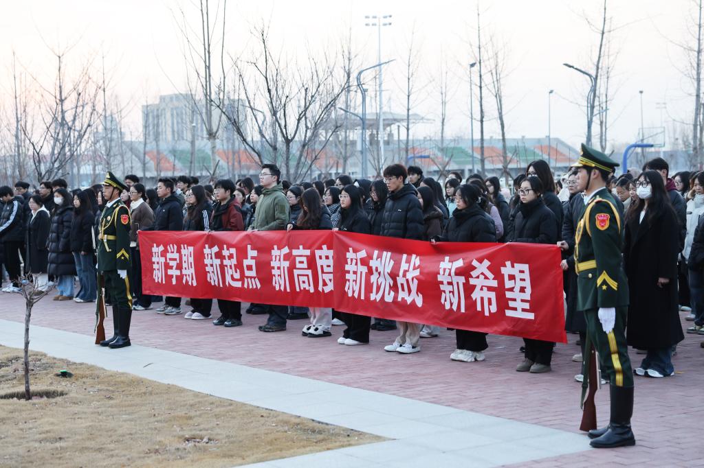 2月17日,我校在南校区旗帜广场举行2025年春季学期开学思政第一课暨升旗仪式。校党委副书记张永福、副校长张彦军出席仪式。党委宣传部、党委学工部(学生处)、团委负责人,各学院党委副书记、师生代表等700余人参加仪式。仪式由张彦军主持。