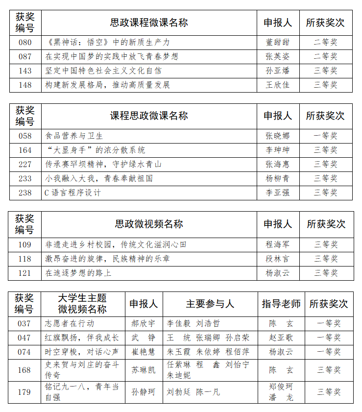 近日,河南省社科联、共青团河南省委、河南省高校思想政治理论课教学指导委员会联合发布《关于公布2024年度河南省大思政微课(微视频)征集活动评选结果的通知》(豫社科联字〔2024〕19号)。我校在此次活动中共斩获17项奖项,其中思政课程微课4项、课程思政微课5项、思政微视频3项、大学生主题微视频5项。