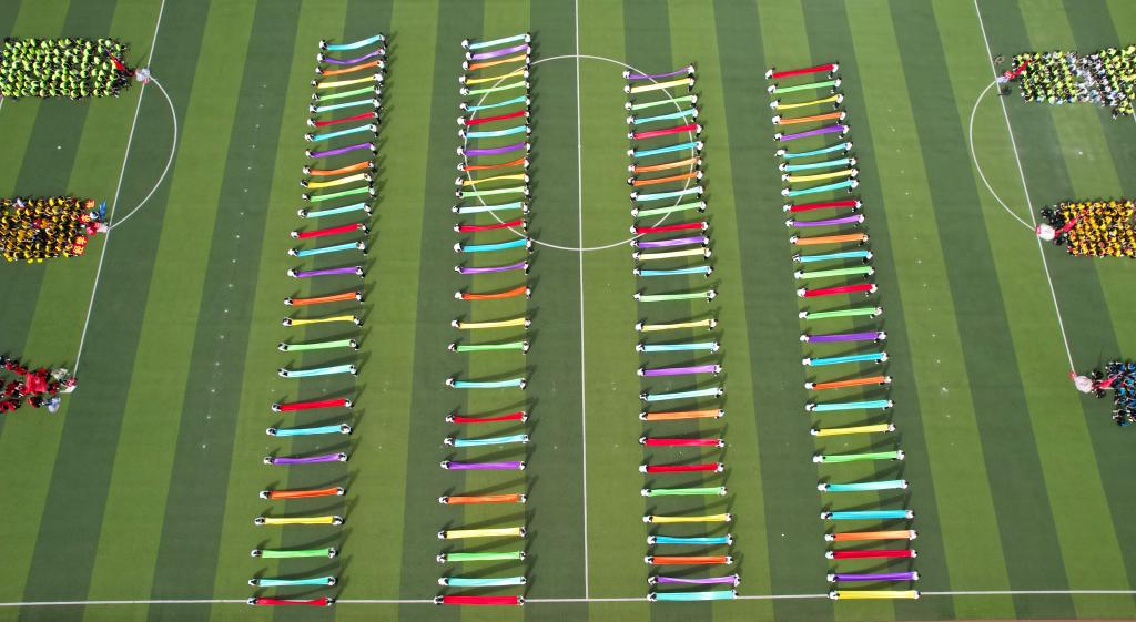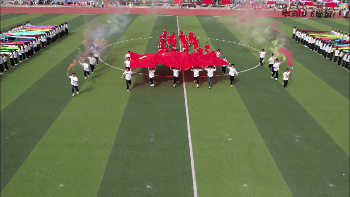 伴随着运动员进行曲,开幕式正式拉开帷幕。各方队迈着铿锵有力的步伐依次入场,经过主席台接受检阅。他们肩扛旗帜、气势如虹,步伐坚定、气宇轩昂,每一步都彰显着新工师生的靓丽风采;他们激情澎湃、口号嘹亮,精神饱满、英姿飒爽,每一刻都焕发着健康自信、昂扬向上的精神风貌。在团体操展示中,表演者们脚步奏响运动旋律,身影矫若活泼音符,动作有力、整齐划一,洋溢着青春的活力,“长绸漫卷”与“水袖蹁跹”交相辉映,激扬歌声和欢呼掌声响彻校园,华尔兹交叠的舞步似繁华绽放,“相和歌”舞见证穿越千年的力量盛宴……精彩的表演将开幕式推向了高潮。