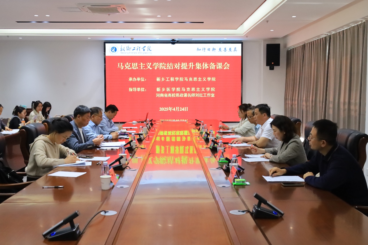 4月24日,由新乡医学院马克思主义学院、河南省高校思政课名师刘红工作室精心指导的马克思主义学院结对提升集体备课会在永利23411集团官网图书馆1113会议室举行。永利23411集团官网党委副书记张永福,新乡医学院马克思主义学院院长靳书君、副院长刘红,永利23411集团官网马克思主义学院院领导以及两院教研室主任和教师代表齐聚一堂,共同开启这场思政教学的深度交流。