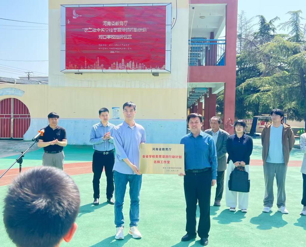 4月25日上午,副校长张彦军,艺术学院院长以及骨干教师前往卫辉市狮豹头乡中心学校,举行河南省教育厅美育浸润计划的“对口学校”与“名师工作室”授牌仪式。此次活动标志着双方在美育教育合作上迈出重要一步,致力于提升乡村学校美育水平,促进学生全面发展。