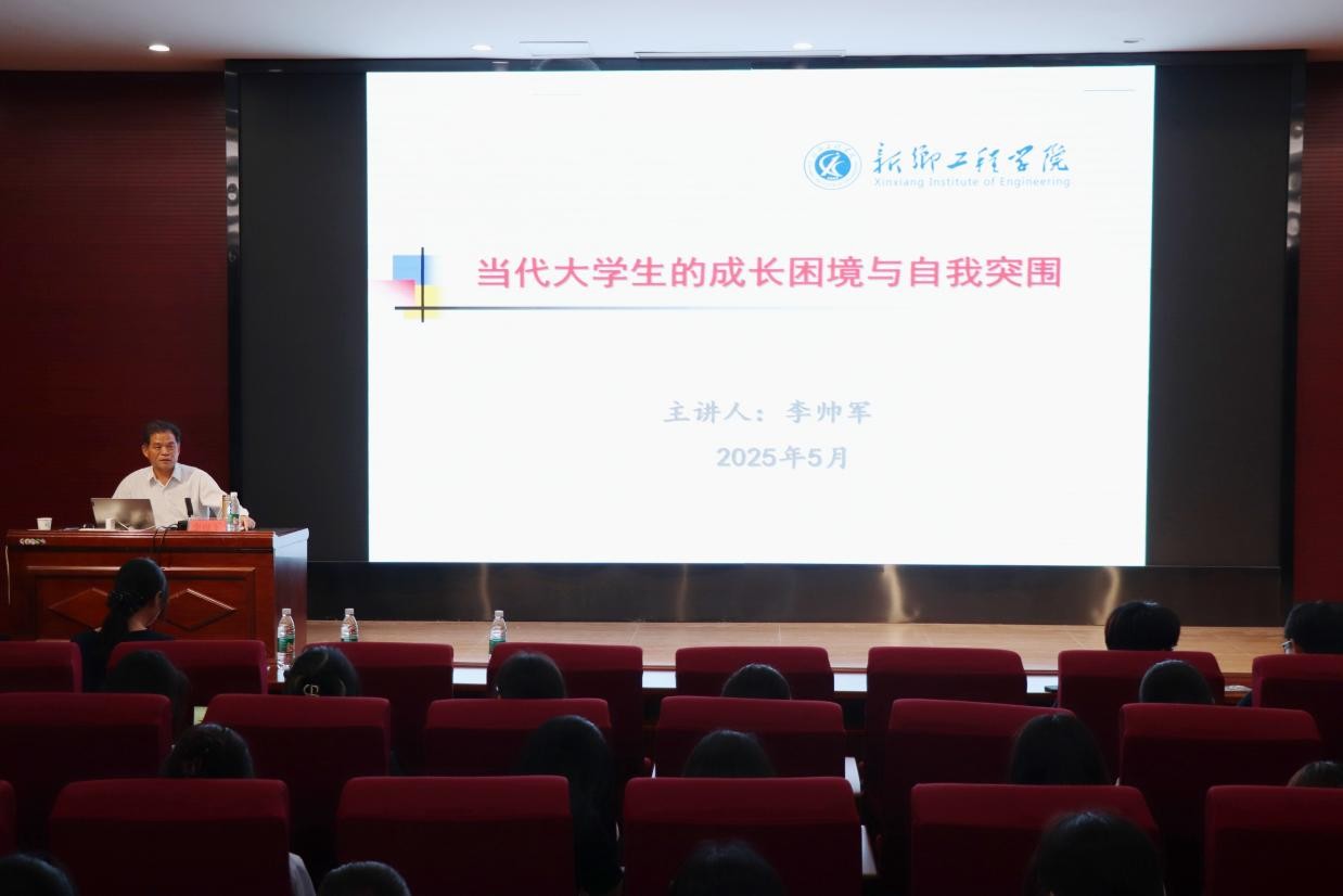李帅军以“当代大学生的成长困境与自我突围”为题,从“大学的模样及大学生的成长现状”“当代大学生的成长困境”“当代大学生成长困境的破解策略”等方面进行深入阐述。讲授过程中,李帅军通过分析大学生在学业压力与成就焦虑、社交困境与群体疏离、未来焦虑与职业迷途等方面存在的问题,结合自身丰富的教育理念和教育实践经验,给学生指出了学业突围、关系重构、心理调适、现实突围的解决策略。李帅军强调,大学环境包容开放,是成长的沃土,同学们要找寻出契合自身的成长路径,将自己打造成能抓住机遇、应对挑战的新时代人才。李帅军鼓励同学们要珍惜难得的大学时光,努力提升自己的知识水平和综合素质,增强自己的责任感和使命感,为未来的人生奠定坚实的基础。