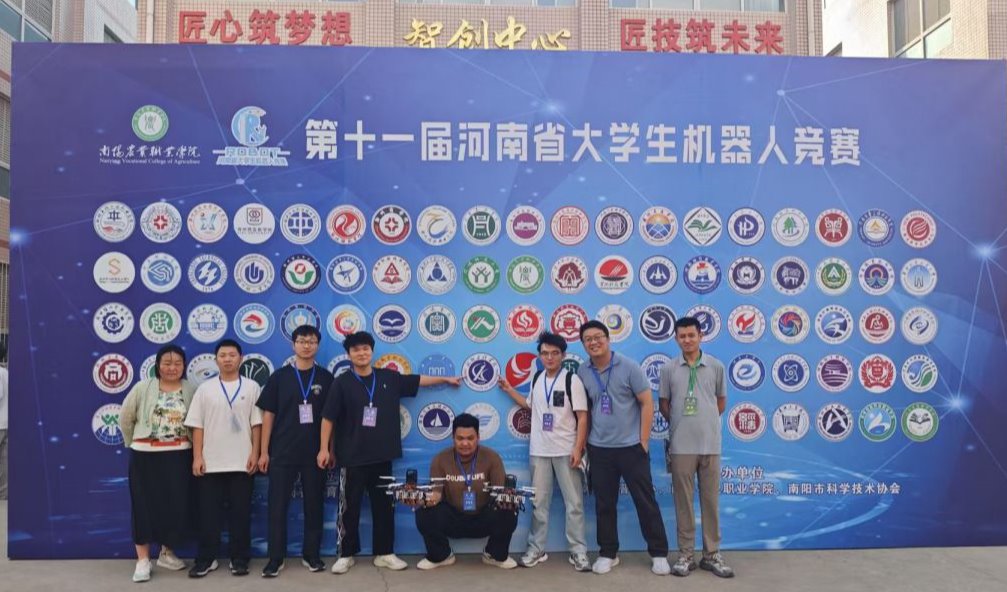河南省大学生机器人竞赛是由河南省科协、河南省教育厅、河南省科技厅联合主办的每年一届的省级A类重要赛事。我校代表队由机器人协会和无人机协会中的成员组成,他们热爱机器人技术、富有创新精神,并在王腾达、田力、高振等老师的带领下,经过数月的备赛和艰苦训练,在大赛中展现出出色的技术实力和团队协作精神,为自己和学校增添荣誉。