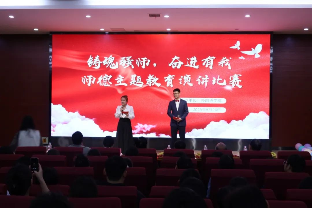 为深化师德师风建设,弘扬教师育人初心,5月26日,我校在学院楼报告厅举办“铸魂强师 奋进有我”师德教育主题演讲比赛。校务顾问陈广文、党委副书记张永福、副校长赵瑞玲与300余名教师齐聚一堂,共同倾听教育故事、感悟师德力量,现场气氛庄重热烈。