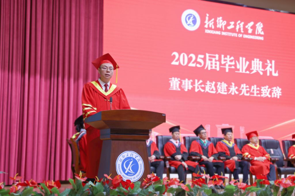 赵建永代表校董事会向全体毕业生们表示热烈的祝贺,向辛勤耕耘的广大教职工致以诚挚的感谢,并围绕“如何在复杂严峻的社会环境之中定义自身的价值”,语重心长地向毕业生们提出了殷切嘱托:一从细微处锤炼品格,二在定位中凝聚力量,三于变革中重释价值。最后,他表示永利23411集团官网永远是毕业生坚实的后盾和永远的家,无论身在何方,母校都与同学们血脉相连,期待常回家看看,与母校和师长分享成功与喜悦,让我们共同见证彼此的成长与荣光。