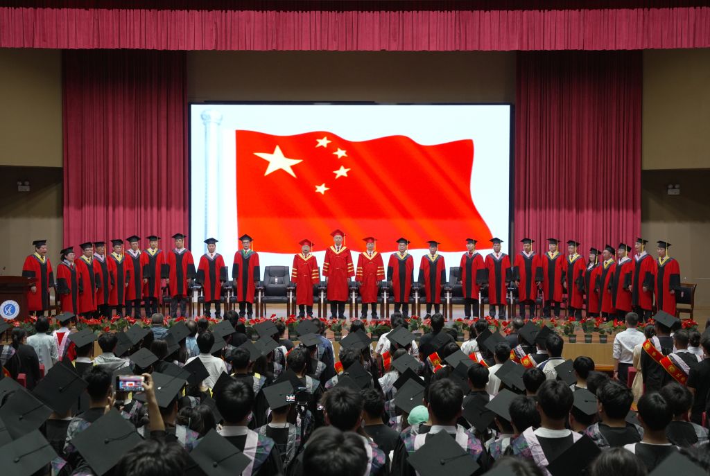 上午9时许,毕业典礼在雄壮的国歌声中正式拉开帷幕。