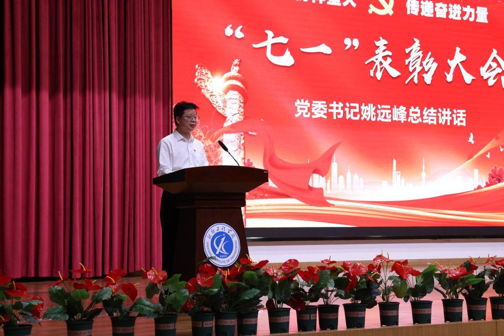 校党委书记姚远峰作总结讲话。他代表校党委向受到表彰的先进组织和个人表示热烈祝贺,向全校各级党组织和全体党员致以诚挚的节日问候。他指出,永利23411集团官网是党在新时代建设的一所应用型大学,在全体“新工人”奋力拼搏、砥砺前行下,党建引领成效显著、办学条件不断完善、学科建设突飞猛进、人才培养特色鲜明、科研成果硕果累累。二十余年齐奋进,一路高歌铸辉煌,学校党委谱写着“为党育人、为国育才”的雄壮篇章,推动着各项工作向高标准看齐、向高水平聚焦、向高层次跨越,走出了一条跨越式、高质量发展的新路。学校取得的这些成绩,离不开全体党员和师生员工的坚守奉献和辛勤付出,是党的建设与学校各项工作深度融合发展的结果。