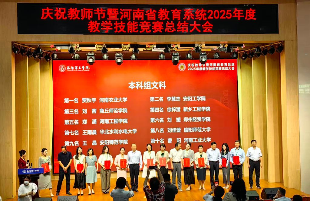 近日,由河南省总工会、河南省教育厅联合举办的省教育系统2025年度教学技能竞赛结果揭晓,我校两位教师表现突出,成绩优异。其中,文法学院徐梓滢老师在全省本科高校230名文科组复赛选手中脱颖而出,决赛总成绩位列文科组第4名;生物工程学院李珅珅老师在工科组224名复赛选手中名列第7名。