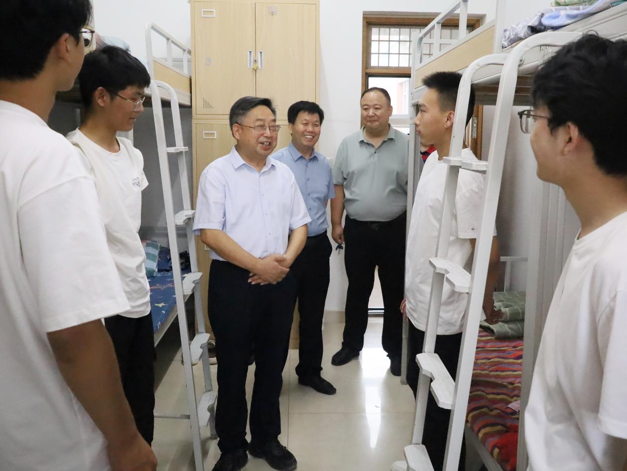 9月7日,执行校长罗士喜、副校长张彦军一行到2025级新生宿舍,亲切看望刚刚入校的大一新生。校领导与新生面对面亲切交流,拉家常、问冷暖、谈学习、话理想,将学校的深切关怀与殷切期望送到同学们身边。相关单位负责人陪同走访。