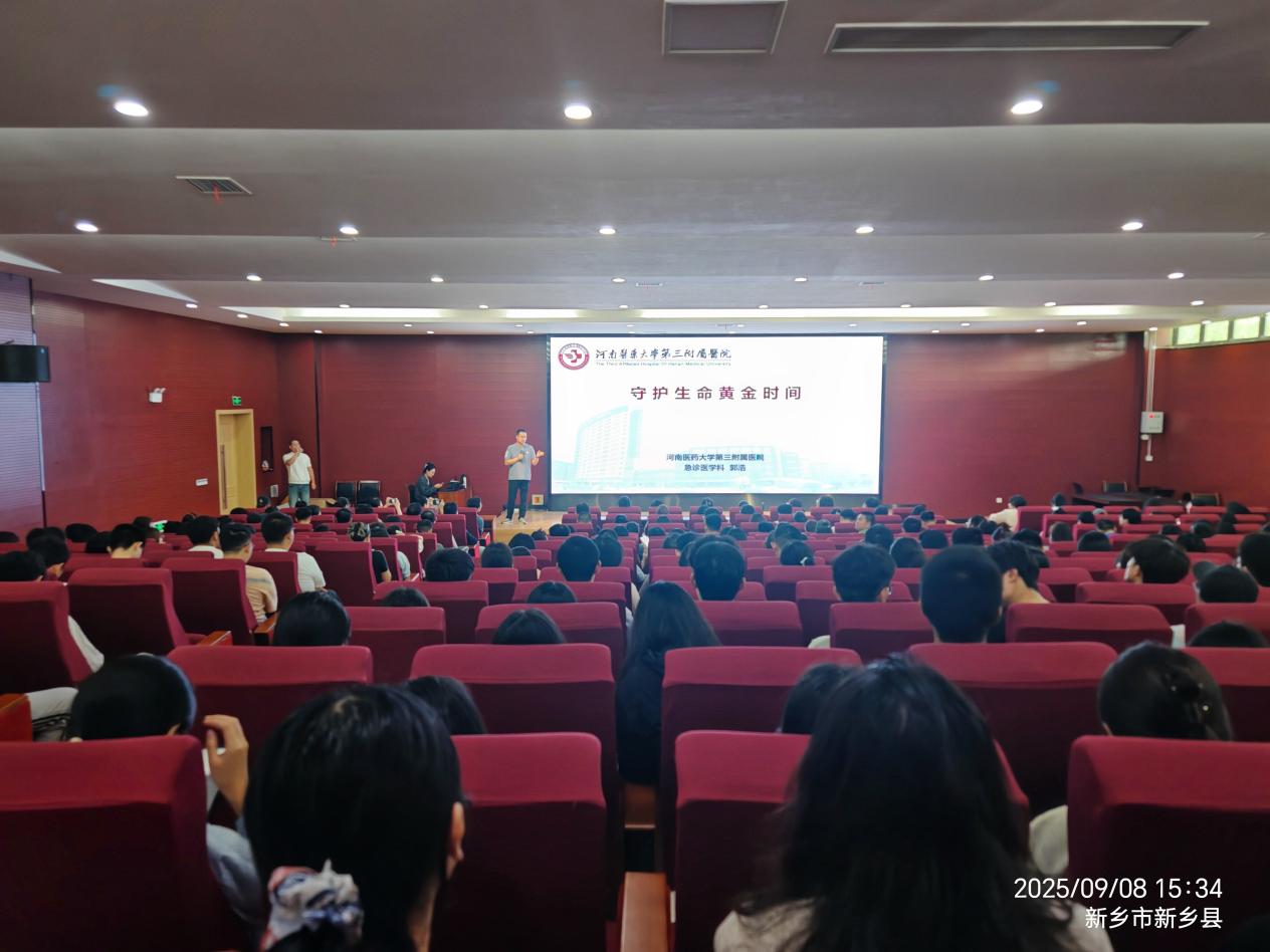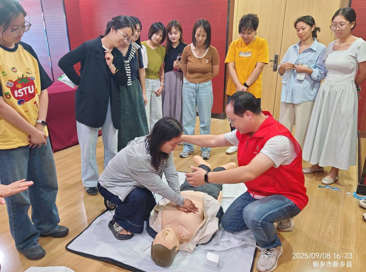 9月8日下午,我校在学院楼大报告厅精心组织了一场针对2025级新生军训全体教官和新生辅导员的急救知识培训及实操演练活动,邀请河南医药大学第三附属医院急诊科副主任医师、医学硕士、BLS导师、急救专家郭浩大夫进行授课,旨在提升校园应急救护能力,为师生的生命健康安全保驾护航。活动由后勤管理处和学生处联合主办。