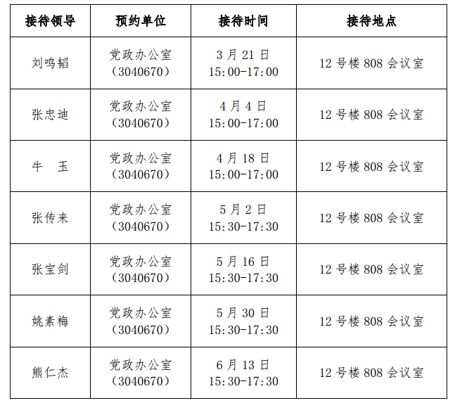 2.若遇特殊情况需更改接待时间、地点或领导等,由党政办公室通过学院网站提前通告。