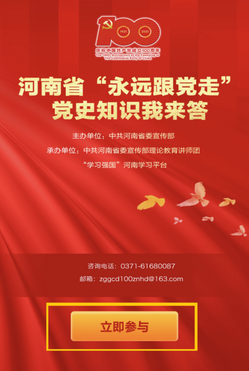 答题活动在“学习强国”河南平台进行,活动入口在“学习强国”河南学习平台首页,参与活动人员注册后进入答题页面进行练习和答题。本次活动采用移动端访问。