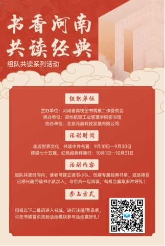 为全面贯彻新发展理念,坚定文化自信,积极响应党的二十大号召,在全面建设社会主义现代化国家的伟大实践中,以更加开放包容的胸怀,积极投身于中华优秀传统文化的传承与世界文化的交流互鉴中,以阅读焕发民族精神的新活力,为国家的繁荣发展提供源源不断的文化支撑。河南省高等学校图书情报工作委员会决定举办“书香河南·共读经典”河南省高校组队共读活动,现将有关事项通知如下: