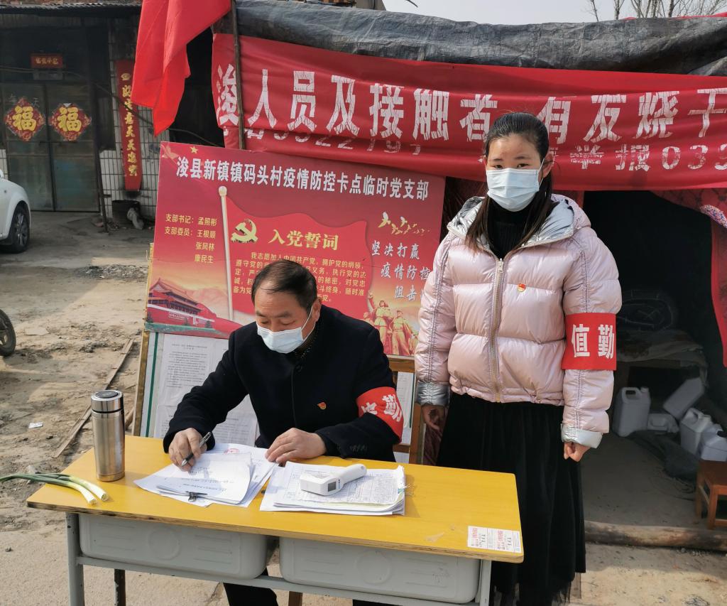 万亚丹是电气系2019届毕业生党员,面对新冠肺炎疫情,她不顾严寒,勇挑重担,主动申请到村口卡点义务值班,成为卡点值班的第一个志愿者。在值班的日子里,她服从当地组织的安排,跟当地村党支部书记一起,劝阻村里人员外出访友,为卡点来往人员登记信息、测量体温,并及时对车辆进行消毒。