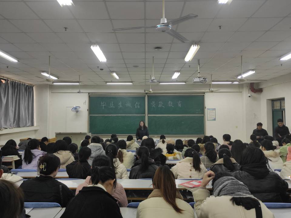 为增强毕业生诚信还贷意识,12月8日上午,中文系在老校区12号楼合二教室举行毕业生诚信贷款教育会议,2017级辅导员徐敏主持会议,全体2017级贷款学生参加。