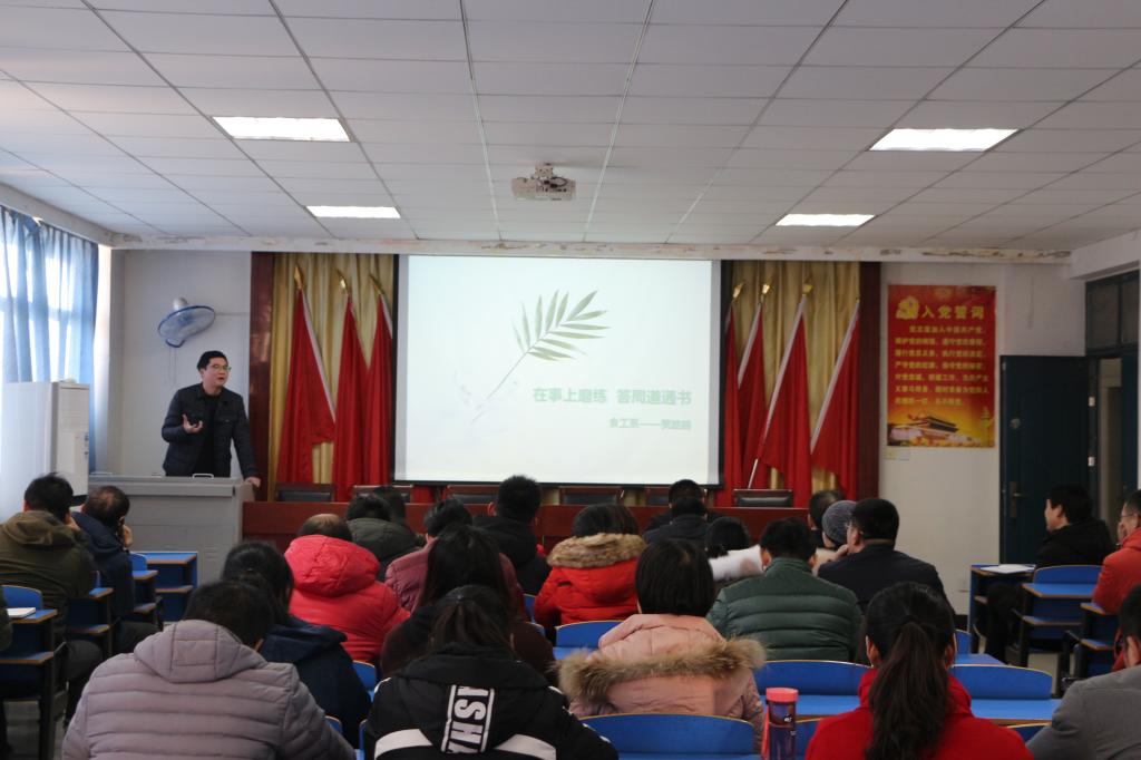 为贯彻落实全国高校思想政治工作会议和全国教育大会精神,进一步提高广大学工干部的文化素质和理论修养,不断加强学习型学工干部队伍建设,12月17日下午,学工部在12号教学楼601党员活动室举办了“知阳明·行文化”学习交流活动,邀请食品科学与工程系辅导员贾路路作题为《在事上磨练——答周道通书》的讲座,全体学工干部参加了此次活动。