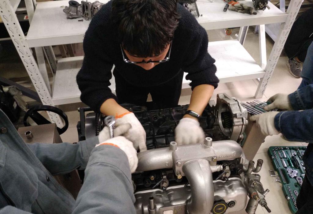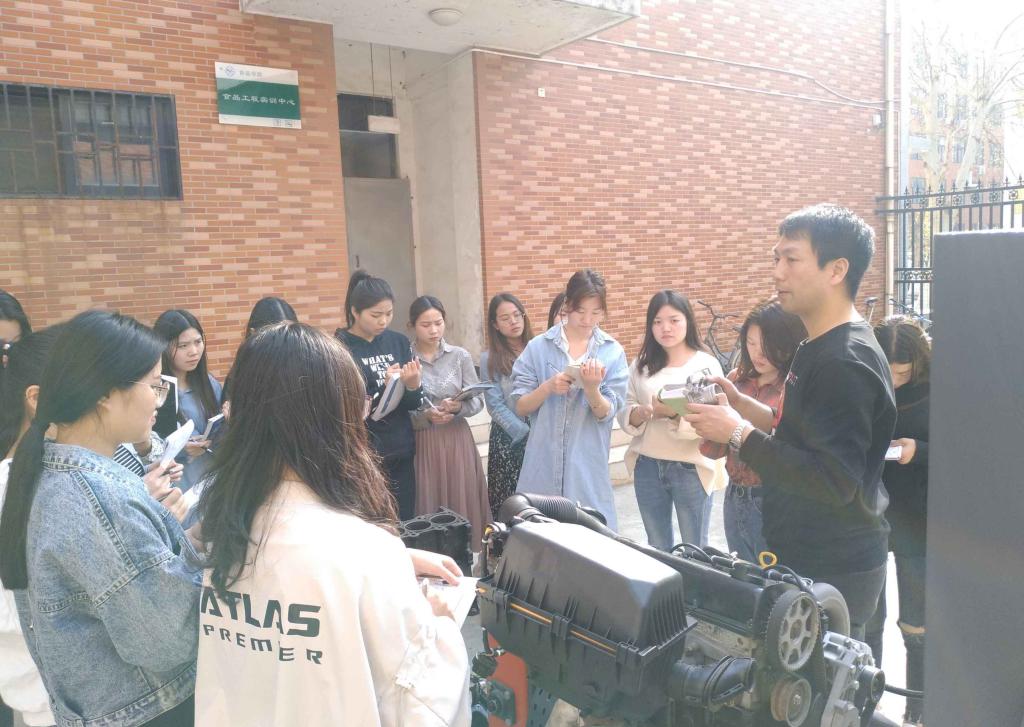 实习伊始,实践教学经验丰富的郭昊老师首先给大家讲解了安全注意事项及操作规程,随后,指导老师们分组讲解汽油机、柴油机及变速器的结构和工作原理,并分组指导学生对汽油机、柴油机、变速器进行拆卸、检修和清洗,最终进行安装、验收、考核。