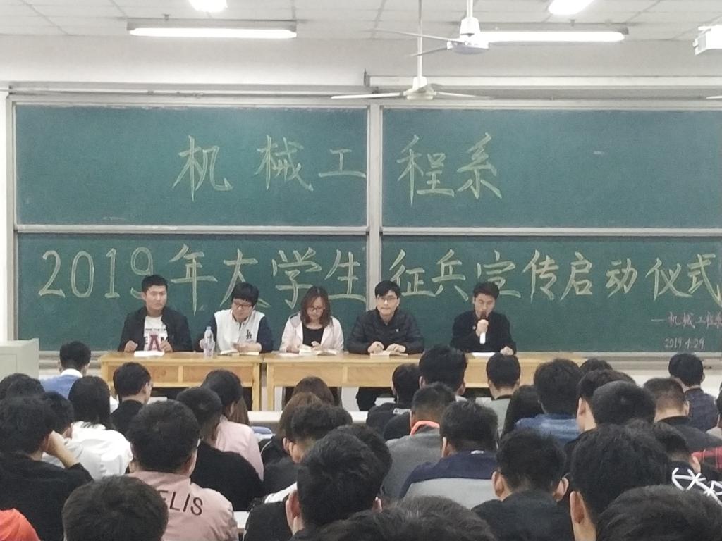 4月29日,机械系在12号教学楼合二教室举行2019年大学生征兵宣传启动仪式。该系征兵工作负责老师郑俊珂,辅导员朱少华、彭鹏,2015级全体同学以及低年级积极应征入伍的学生代表参加了启动仪式。