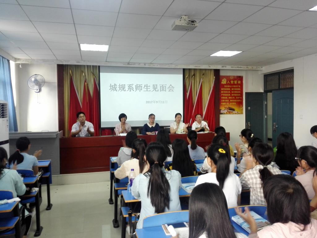 为使2017级新生同学尽快认识、熟悉老师,了解大学生活,9月11日上午,城规系在12号楼601党员活动室召开2017级师生见面会。城规系主任王秀鸽、教学秘书宋歌、学生工作负责人郭丽娟、团总支书记晋跃栋及部分教师代表,2017级全体新生参加了会议。会议由郭丽娟老师主持。