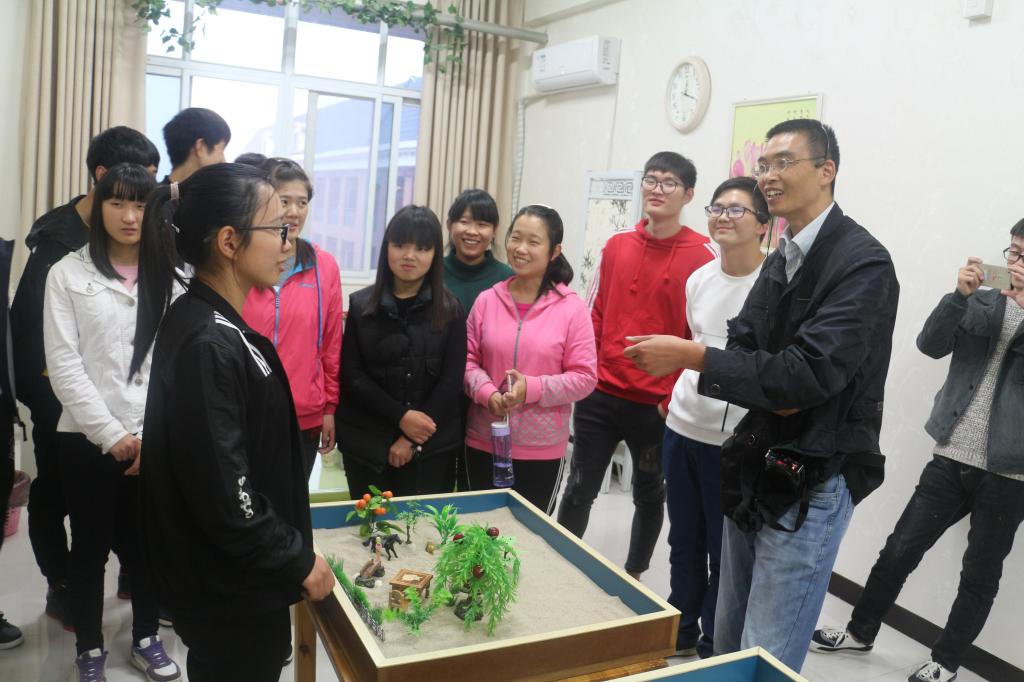 为进一步提高我院学生对心理健康教育工作的认识,帮助学生树立理性平和的健康心态,培养良好的心理品质,10月25日下午,学工部在大学生心理健康教育与咨询中心心理沙盘室组织2017级学生进行了团体心理沙盘活动。