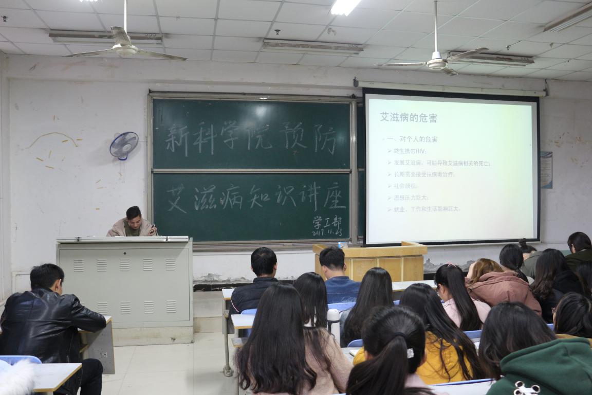 为切实做好我院艾滋病健康知识宣传教育工作,提高学生预防和控制艾滋病的知识水平和能力,11月23日,院学工部在12号教学楼合一、合二、合五教室组织开展了预防艾滋病健康知识宣讲活动,我院各年级班委参加了此次活动。