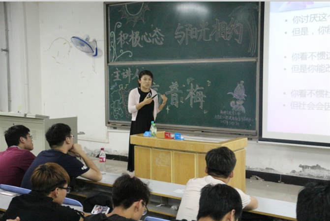 最后,心理健康知识讲座在同学们的掌声中落下帷幕,此次讲座鼓励同学们以积极的心态去学习,乐观地面对今后的生活,同时学会享受阳光、充实地度过美好的大学生活。