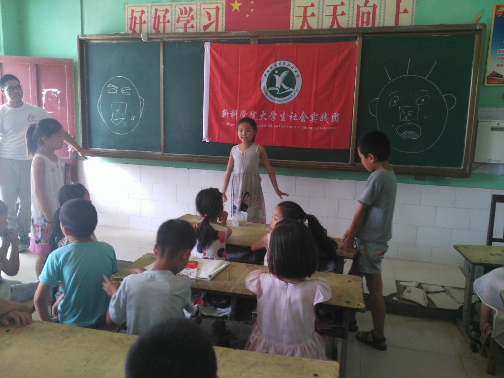经过了1个多小时的路程,实践团队抵达了目的地。在王村乡小学,周校长对大家的到来表示热烈欢迎。化工系李玉青老师对本次活动的目的进行了讲解,激励同学们要认真学习,积极向上,树立远大的理想,将来做一个对社会有用的人。随后,实践团队的成员向学生发放橡皮、铅笔等学习用具,并与班里的学生做起了互动游戏“贴鼻子”,活跃了教室的氛围,让学生们更好地融入活动。活动在团队成员与小朋友折纸、捏橡皮泥、画画等手工艺制作下顺利展开,大家围成一圈坐在一起,小朋友们畅谈人生理想,树立远大目标。