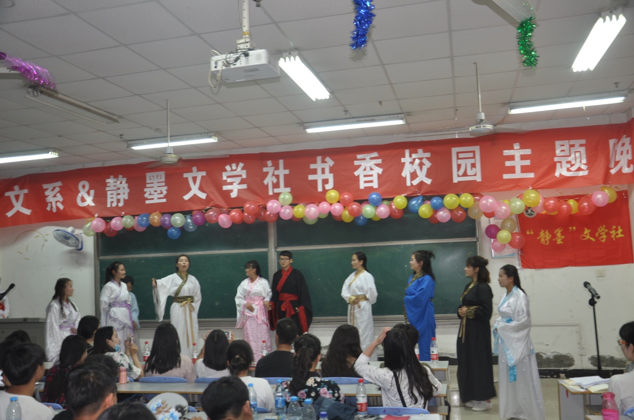 5月6日晚,由中文系主办、静墨文学社承办的读书月闭幕晚会暨颁奖典礼在12号教学楼合一教室举行,近200名读书爱好者、活动参与者观看了晚会,为中文系开展的“读书月”系列活动画上了圆满的句号。